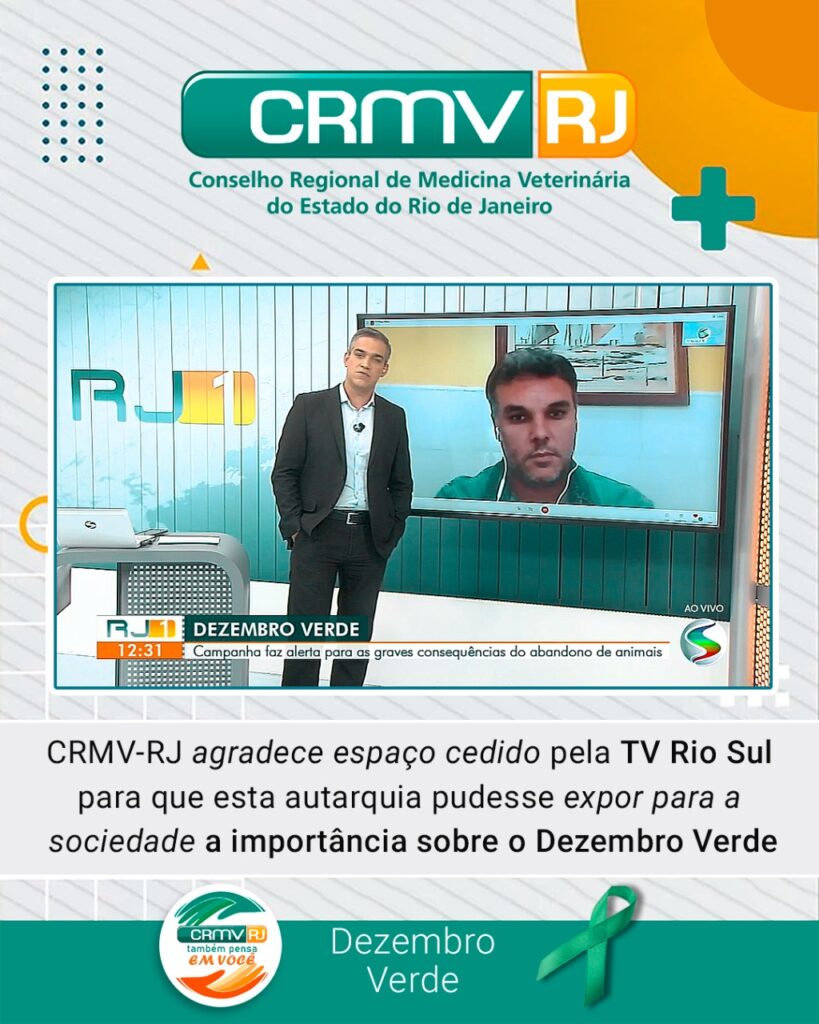 O CRMV-RJ agradece o espaço cedido pela TV Rio Sul, afiliada à TV Globo, em um horário nobre e em uma reportagem de mais de nove minutos, para que esta autarquia pudesse expor para a sociedade a importância sobre o Dezembro Verde.