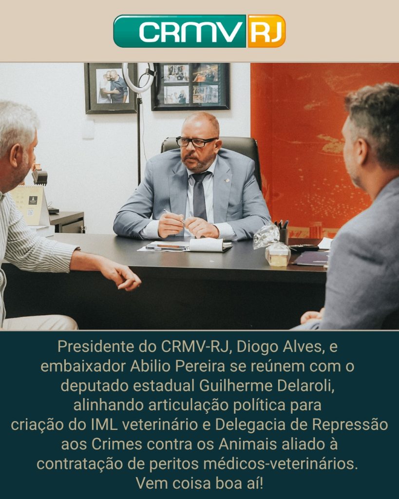 Representantes do CRMV-RJ se reúnem com o deputado estadual Guilherme Delaroli, iniciando projeto para criação do IML veterinário e Delegacia de Repressão a Crime aos Animais