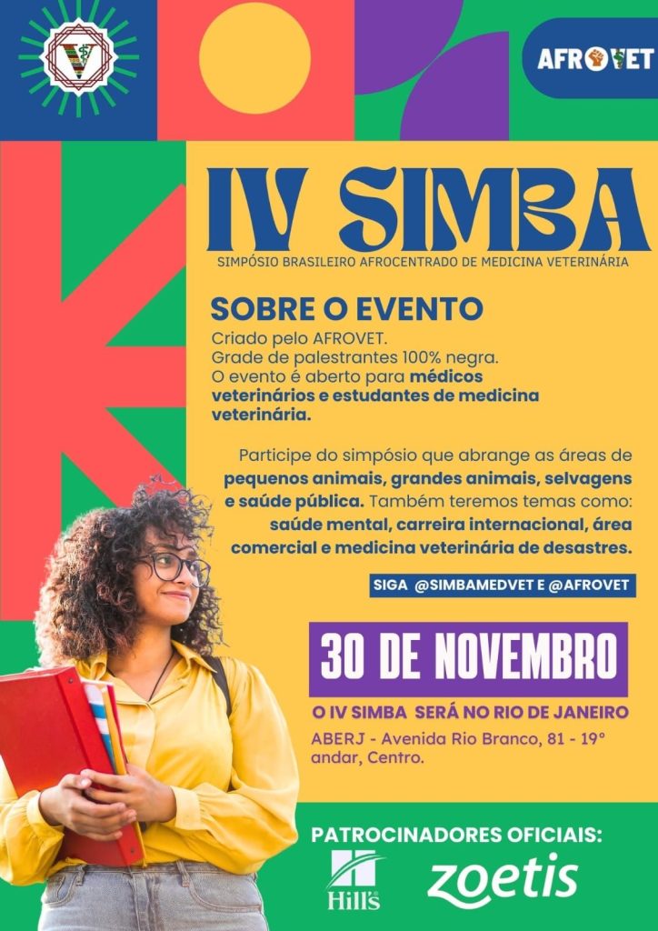 O IV SIMBA MED VET, Simpósio Brasileiro Afrocentrado de Medicina Veterinária irá acontecer no dia 30/11 das 9h às 18h30 no Rio de Janeiro – RJ, evento organizado pelo AFROVET. O evento tem início com palestras sobre A importância da Saúde Mental na Medicina Veterinária e Carreira Internacional, à tarde o participante poderá optar por […]