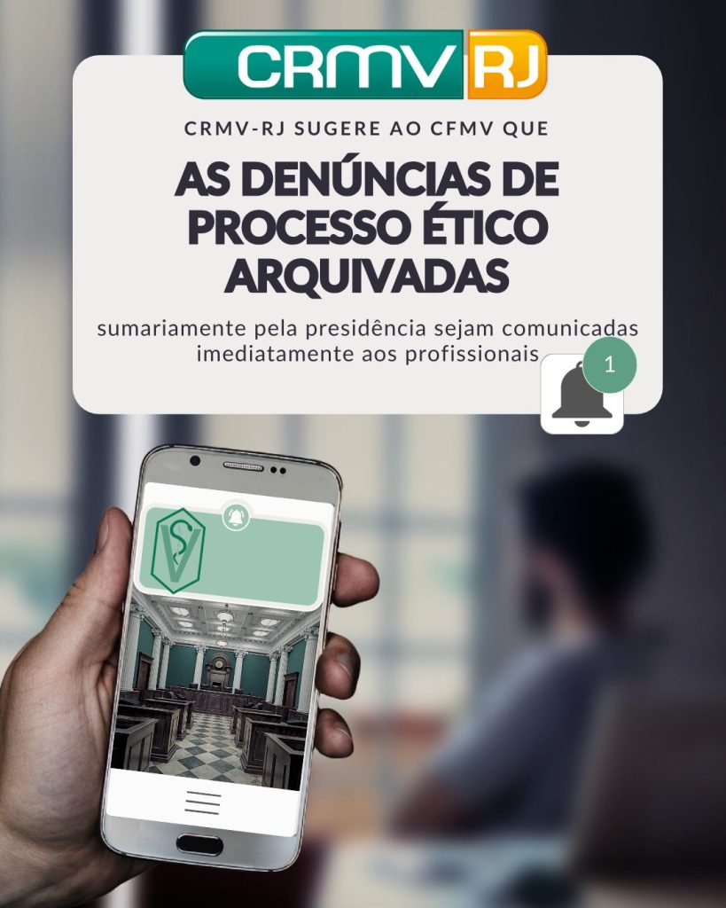 CRMV-RJ sugere ao CFMV que denúncias de processo ético arquivadas sumariamente pela presidência sejam comunicadas imediatamente