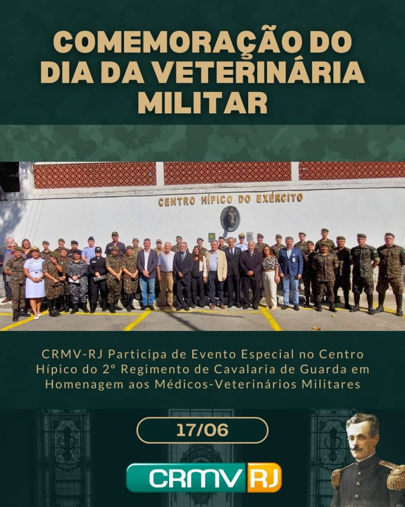 O Centro Hípico do 2º Regimento de Cavalaria de Guarda foi palco de um evento especial nesta segunda-feira (17), destinado a homenagear os médicos-veterinários militares, data em que comemora-se o Dia da Medicina Veterinária Militar Brasileira. A cerimônia contou com a presença de membros do Conselho Regional de Medicina Veterinária do Estado do Rio de