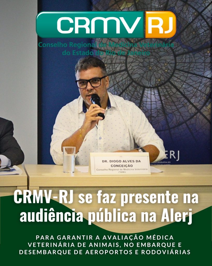 O CRMV-RJ, representado pelo presidente Diogo Alves, participou da audiência pública “Cachorro, não é carga” na Alerj, discutindo o PL 3467/2024 (“PL do Joca”) para aumentar a segurança dos pets em viagens aéreas. A proposta homenageia um golden retriever que morreu após um voo desviado. A audiência foi presidida pelo deputado Carlos Minc, da Comissão