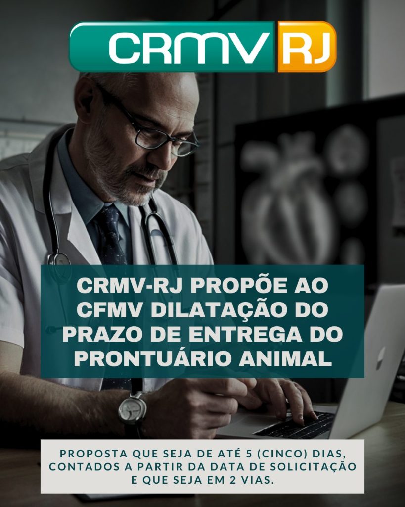 O Conselho Regional de Medicina Veterinária do Estado do Rio de Janeiro (CRMV-RJ), representado pelo presidente Diogo Alves, apresentou uma proposta relevante à Câmara Nacional dos Presidentes (CNP) em Goiânia. A sugestão ao Conselho Federal de Medicina Veterinária (CFMV) é dilatar o prazo para a entrega do prontuário do paciente ao responsável pelo animal. Atualmente,