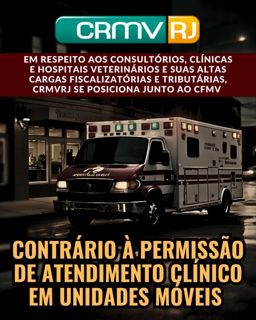 O Conselho Regional de Medicina Veterinária do Estado do Rio de Janeiro (CRMV-RJ), em reunião com os demais 26 presidentes dos CRMVs em Goiânia, manifestou-se contrário à permissão de atendimento clínico em unidades móveis. O posicionamento visa proteger os consultórios, clínicas e hospitais veterinários, que enfrentam rigorosas fiscalizações e altas cargas tributárias. A decisão se