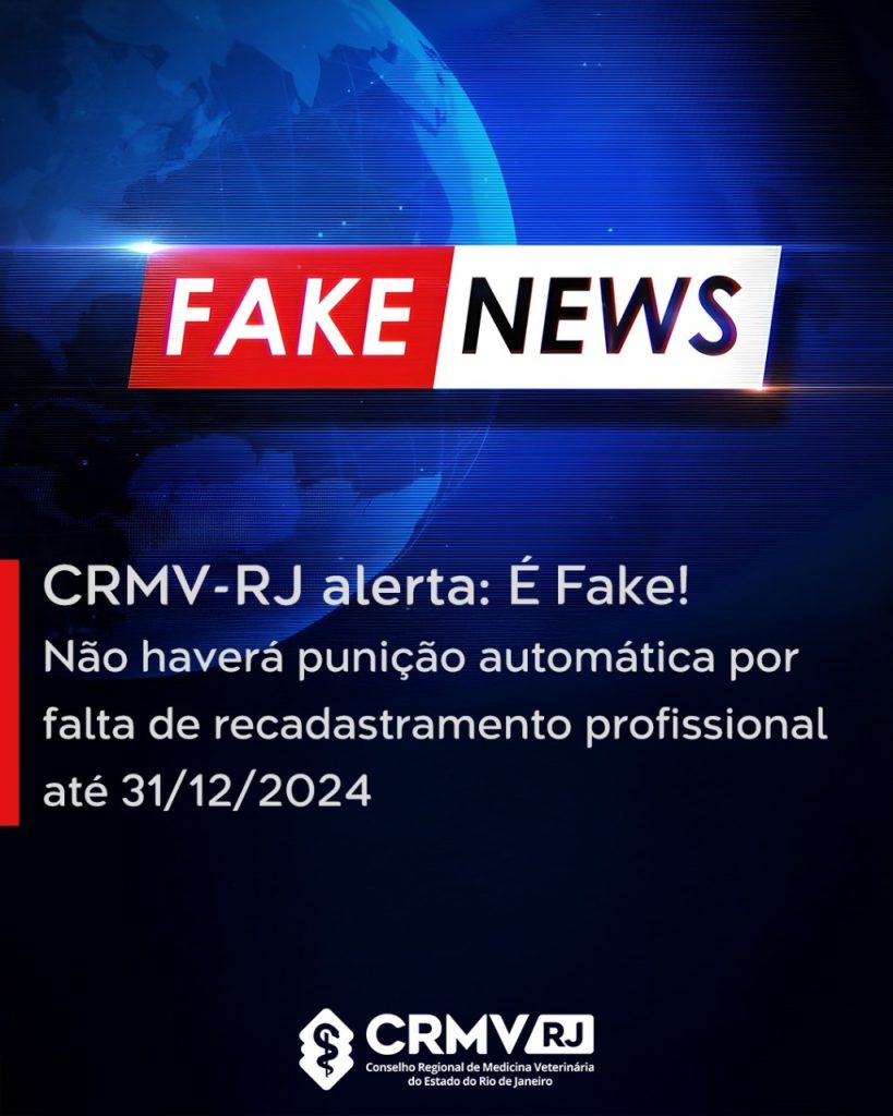 CRMV-RJ alerta: É Fake! Não haverá punição automática por falta de recadastramento profissional até 31/12/2024