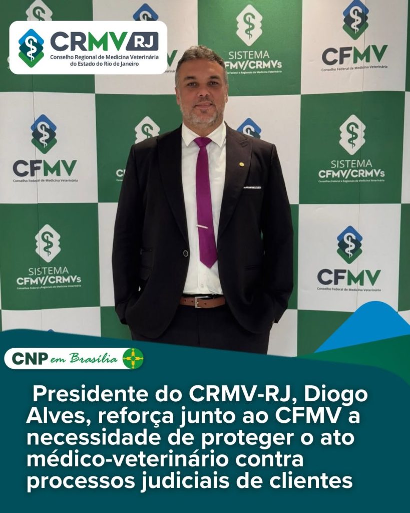 Presidente do CRMV-RJ, Diogo Alves, reforça junto ao CFMV a necessidade de proteger o ato médico-veterinário contra processos judiciais de clientes