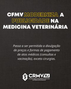 A medida representa um avanço histórico para a Medicina Veterinária brasileira, ao alinhar a profissão às exigências legais e à transparência nas relações de consumo. Assim como já ocorre na área médica, a divulgação de valores fixos em serviços de rotina é autorizada, enquanto os atos cirúrgicos continuam com divulgação proibida, por dependerem de avaliação clínica individualizada.