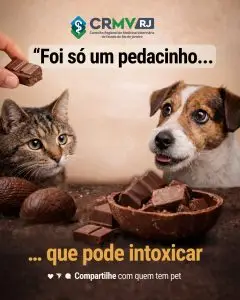“Mesmo pequenas quantidades de chocolate podem ser tóxicas, principalmente para cães de porte pequeno. A ingestão pode provocar desde vômitos e diarreia até taquicardia, tremores, convulsões e até morte”, alerta a médica-veterinária Raísa Godoi, presidente da Comissão de Clínica Médica e Cirúrgica de Animais de Companhia do CRMV-RJ.
