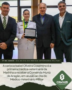 Neste ano, a homenageada foi a médica-veterinária militar da Marinha do Brasil, Primeira-Tenente (RM2-Md) Isabel Oliveira Cosentino (CRMV-RJ nº 14329), graduada pela Universidade Federal Fluminense (UFF), com mestrado e doutorado na mesma instituição. Além da sólida carreira acadêmica, acumula premiações nacionais e internacionais, como os reconhecimentos da Academia Nacional de Veterinária do Uruguai e do Congresso Brasileiro de Buiatria.