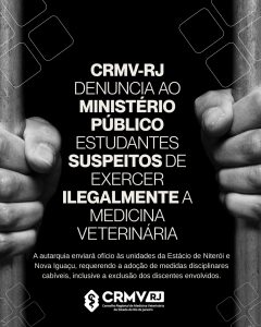 O Conselho Regional de Medicina Veterinária Rio de Janeiro (CRMV-RJ) encaminhou ao Ministério Público duas denúncias envolvendo estudantes do curso de Medicina Veterinária que estariam, supostamente, atuando de forma irregular e praticando o exercício ilegal da profissão.