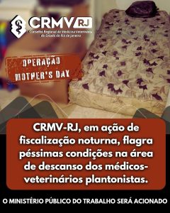 Um colchonete velho no chão, equipamentos desorganizados e nenhum mobiliário básico. Foi esse o cenário insalubre encontrado pelo Conselho Regional de Medicina Veterinária do Rio de Janeiro (CRMV-RJ) na área de descanso destinada aos médicos-veterinários plantonistas de um hospital veterinário 24 horas, durante fiscalização, em Campos dos Goytacazes, Norte Fluminense.