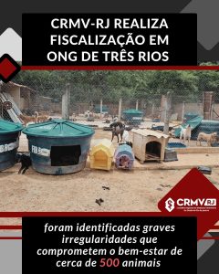 O CRMV-RJ realizou uma fiscalização em um canil administrado por uma ONG em Três Rios, atendendo a uma solicitação do Ministério Público do Estado do Rio de Janeiro (MPRJ). Durante a vistoria, foram constatadas irregularidades estruturais e de manejo que comprometem o bem-estar e saúde dos cerca de 500 animais abrigados.