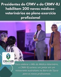 O Conselho Regional de Medicina Veterinária do Rio de Janeiro (CRMV-RJ) promoveu, na última semana, a solenidade de entrega da Cédula de Identificação Profissional (CIP) aos novos médicos-veterinários. Realizado no Américas Barra Hotel, o evento marcou oficialmente o início do exercício profissional desses profissionais e contou com a presença e prestígio da presidente do CFMV, Ana Elisa Almeida.