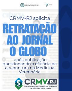 O Conselho Regional de Medicina Veterinária do Rio de Janeiro (CRMV-RJ) enviou um ofício ao jornal O Globo solicitando a retratação de informações publicadas em coluna intitulada “Acupuntura para bicho, não. É cruel e antiético submeter animais a tratamentos sem base científica”. O texto foi veiculado nesta segunda-feira (21) e levantou questionamentos sobre a prática de acupuntura em animais, descrevendo-a como sem fundamento científico e antiética.