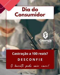 Neste sábado, 15 de março, é comemorado o Dia do Consumidor. O CRMV-RJ, sempre atento à segurança e ao bem-estar animal, faz um alerta importante: desconfie de preços muito baixos em cirurgias e outros procedimentos veterinários. Muitas clínicas que utilizam nomenclatura de “populares” adotam estratégias como a venda casada, atraindo consumidores com valores reduzidos, mas embutindo cobranças de exames e serviços adicionais, muitas vezes desnecessários.