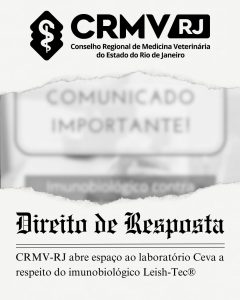 A gestão 2023-2026 do CRMV-RJ, primando pela transparência e parceria com diversos laboratórios que exaltam a Medicina Veterinária em nosso país, vem, por meio deste post, emitir um direito de resposta ao laboratório Ceva com relação ao post anterior: