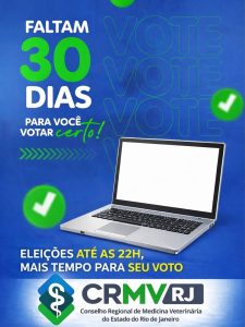 Atenção médicos-veterinários e zootecnistas. Está chegando a hora de votar para os 23 mil profissionais registrados no CRMV-RJ. Faltam apenas 30 dias.