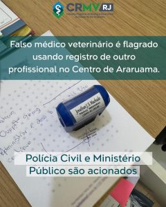 Durante uma ação de fiscalização realizada em 19 de dezembro de 2024, o Conselho Regional de Medicina Veterinária do Rio de Janeiro (CRMV-RJ) identificou o uso indevido do registro profissional de um médico-veterinário regularmente inscrito no CRMV-RJ por um outro indivíduo, o que pode caracterizar a contravenção penal do exercício ilegal da profissão e o crime de falsidade ideológica. O caso aconteceu em uma clínica veterinária localizada no Centro de Araruama.