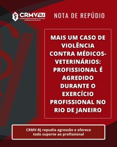 O CRMV-RJ se solidariza com o profissional e ratifica seu posicionamento em não admitir, em hipótese alguma, qualquer tipo de violência a profisisonais quer seja no exercício profisional ou não. Ações dessa natureza são inaceitáveis e deverão ter a atenção devida das autoridades competentes.
