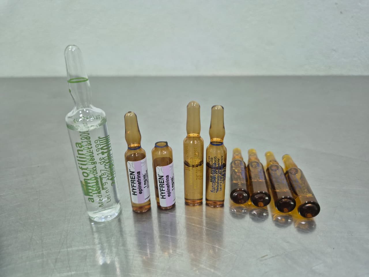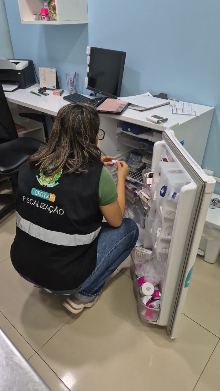 No mesmo estabelecimento, foram descartados medicamentos vencidos — incluindo produtos de uso controlado — e ampolas abertas com indícios de possível reutilização. Também foi verificado que os medicamentos de controle especial não estavam armazenados em armário trancado e que não havia controle de temperatura da geladeira nem plano de gerenciamento de resíduos.