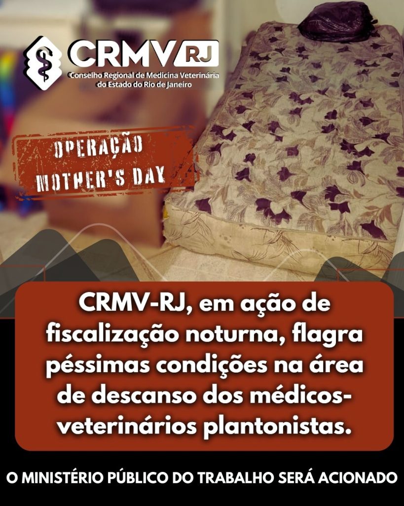 CRMV-RJ identifica irregularidades em área de descanso de médicos-veterinários durante fiscalização noturna