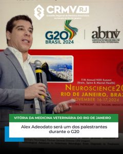 O Conselho Regional de Medicina Veterinária do Rio de Janeiro (CRMV-RJ) celebra uma importante conquista para a Medicina Veterinária brasileira. O médico-veterinário Alex Adeodato, presidente da Associação Brasileira de Neurologia Veterinária (ABNV), será um dos palestrantes no Neuroscience20 (N20), evento internacional de neurociências que ocorre em paralelo ao G20 e terá sua 11ª edição realizada no Rio de Janeiro, nos dias 16 e 17 de novembro de 2024. A presença de Adeodato marca um avanço para o reconhecimento da Medicina Veterinária em discussões globais de saúde e ciência.